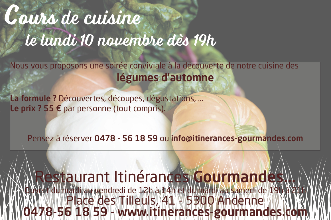 Ce lundi 10 novembre, venez nous rejoindre pour découvrir notre cuisine des légumes.
